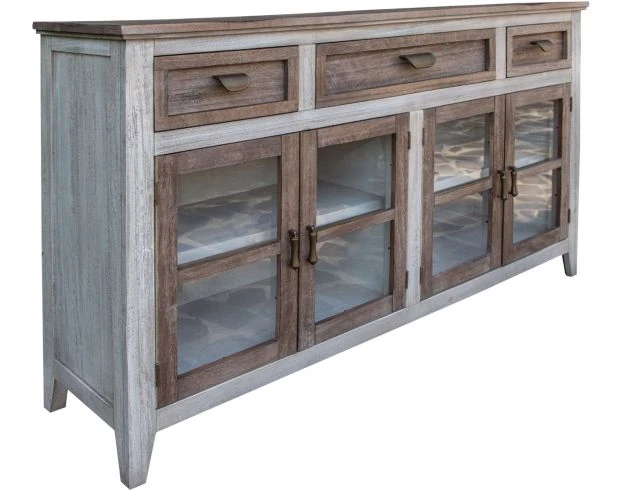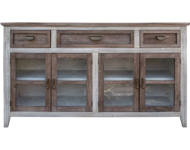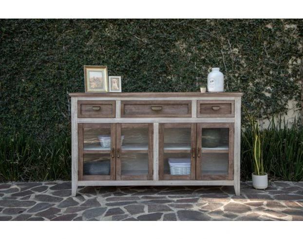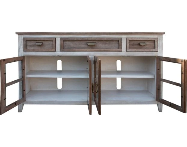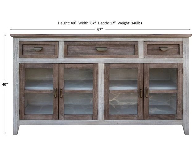 Built with 100% solid mango wood, the Sahara server adds function to your dining space. Its durable and eco-friendly wood species is topped with multi-step two-tone lacquer finish. It features three drawers and two separate cabinets. Inside each cabinet is a fixed shelf offering ample storage space.