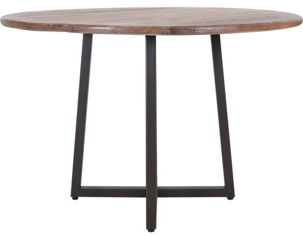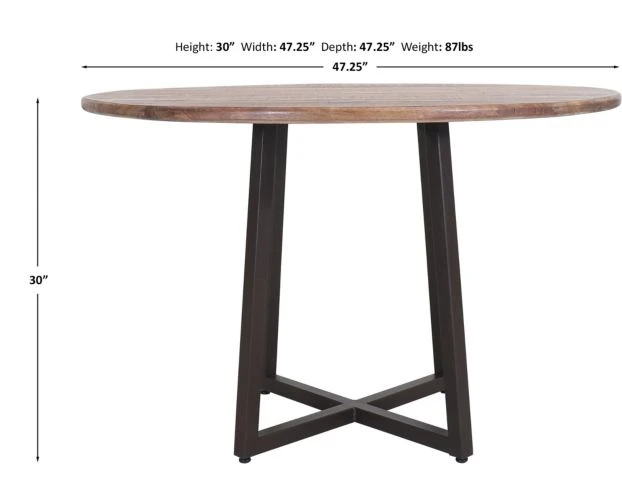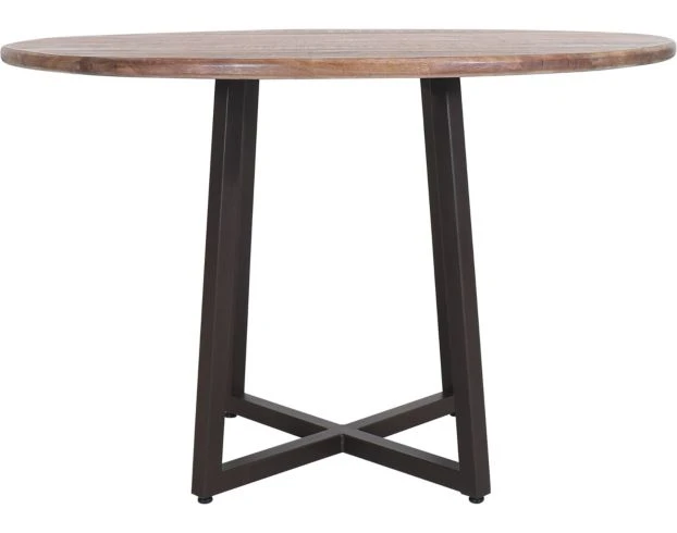 Find your way mid-century modern with this Int’l Furniture Tulum round table. It features a sustainable mango wire brushed table top. The multi-step nitrocellulose lacquer finish enhances the beauty of authentic solid-wood grain. It includes a metal base finish with durable overtreated paint. Due to lighting and monitor differences, actual colors and finishes may vary slightly from what appears online.
