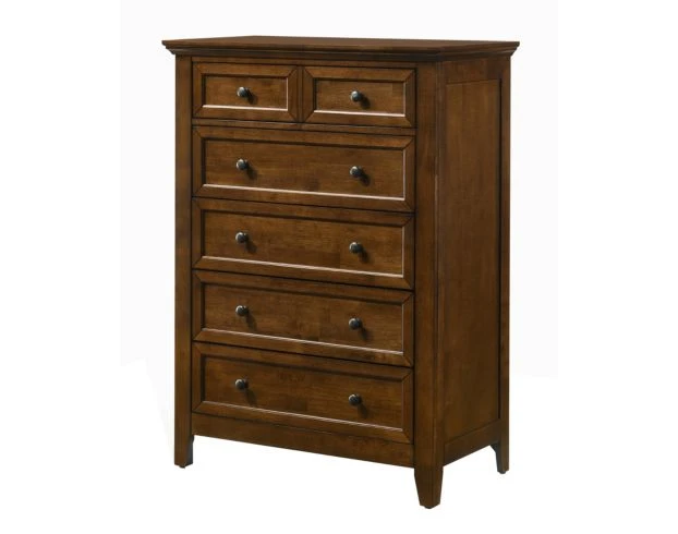 Create the traditional bedroom of your dreams with the San Mateo chest. This stately chest features a Tuscan brown finish, dovetail joinery, smooth ball bearing glides, a cedar-lined bottom drawer, pewter knobs and six spacious drawers. The dark finish complements any color palette.