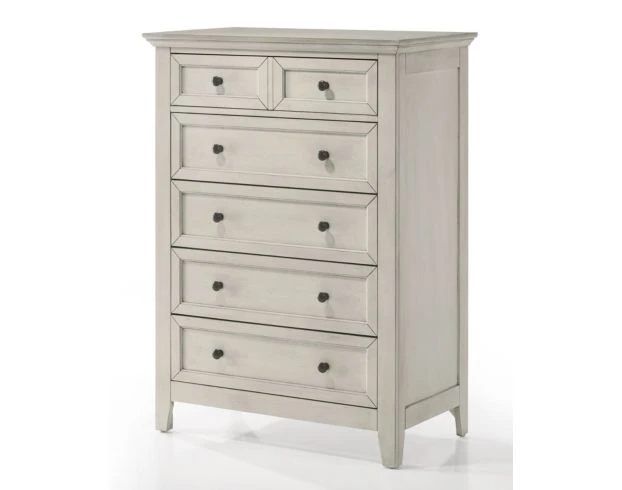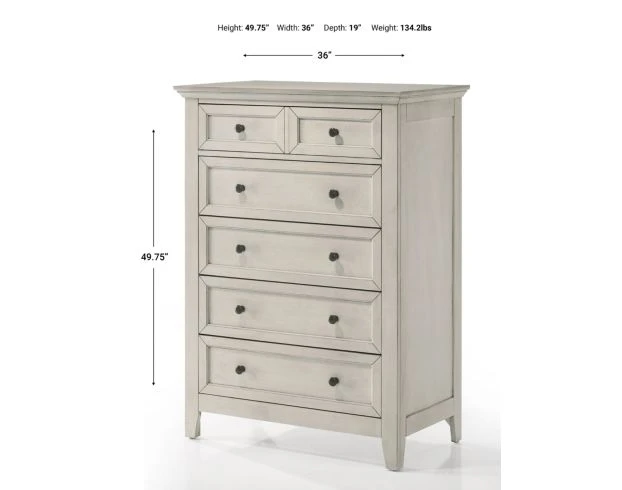Create the traditional bedroom of your dreams with the San Mateo chest. This stately chest features a rustic white finish, dovetail joinery, smooth ball bearing glides, a cedar-lined bottom drawer, pewter knobs and six spacious drawers. The light finish complements any color palette.