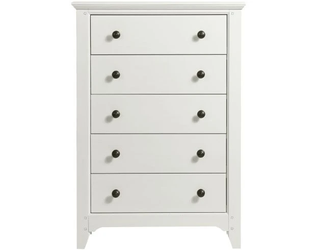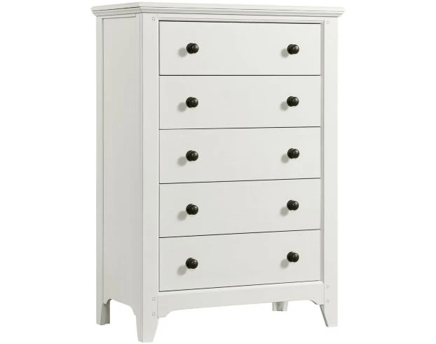 Give your child the bedroom they deserve with the Intercon Tahoe Youth Chest. This piece was crafted with pine wood and a gorgeous sea shell white finish for that cozy rustic look. It features five drawers with English dovetail construction and ball-bearing glides for smooth motion. Place a lamp or some stunning décor on top to complete the look!