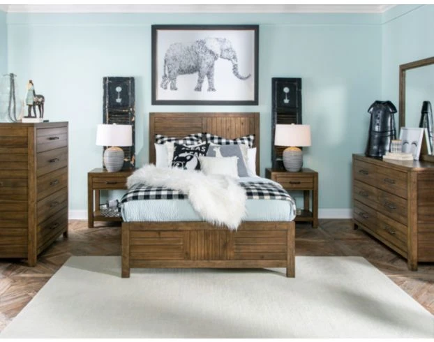 The Summer Camp nightstand is the perfect addition to your transitional bedroom decor. This beautiful nightstand features straight lines and brown plank details that bring the spirit of sleepaway camp to your home. Store your belongings in the one drawer or below on the open shelf. Crafted from high-quality materials, this nightstand is finished with a distressed Acacia veneer that adds a touch of rustic charm to the overall design. The brown nightstand is designed to complete your transitional look and create a warm and inviting atmosphere in your bedroom.