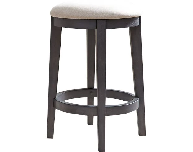Bring tranquility and a cozy cottage vibe into your home with this upholstered console stool. Its cushioned seat provides the perfect seating arrangement for your home bar or dining counter. The authentic pine veneers in weathered gray and the slate finish create a two-toned natural look. LOC: 7E