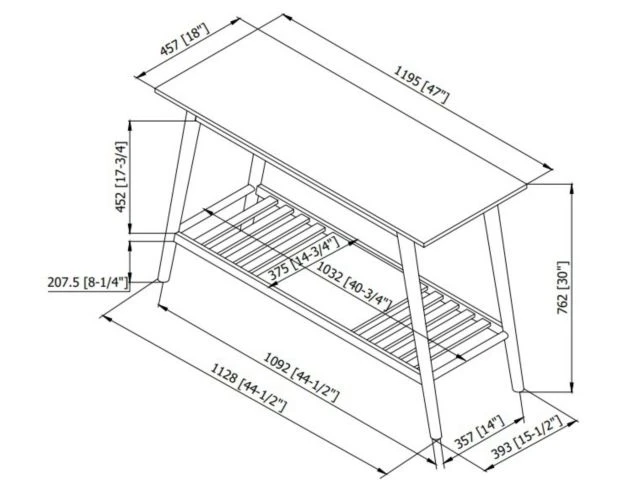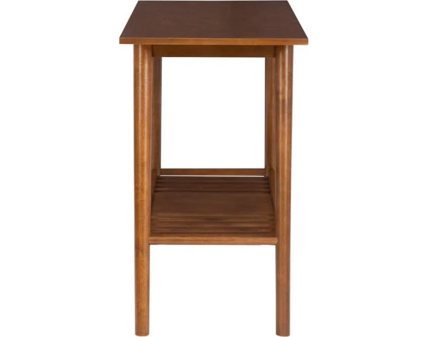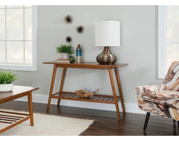 Add a touch of mid-century modern style to your home with this Linon Cosgrove console table. The sleek lined design is finished in a rich, warm brown, while the bottom shelf provides ample space for storage and display. This piece will be the perfect addition to a living room or sitting area. LOC: 7D