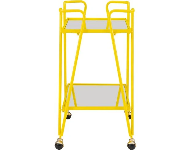 Ideal for entertaining, the Ellie yellow bar cart is sure to infuse your next gathering with industrial character. A spacious mirrored top and shelf provides ample storage space for bottles, glasses and other bar essentials. The castor wheels provide for easy mobility around your home. Durable metal legs cast in a yellow finish perfectly round out this storage accent, allowing you to bring contemporary style into any room of your choosing. LOC 7C