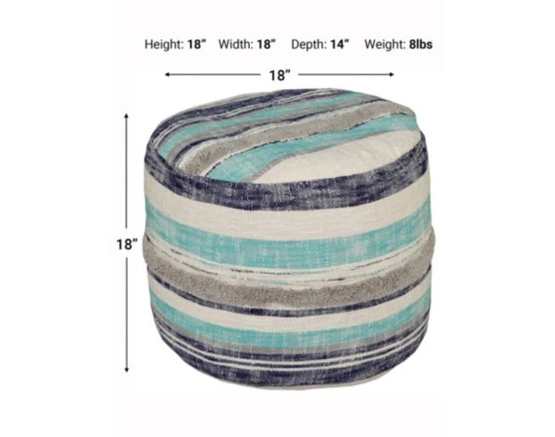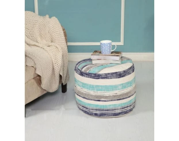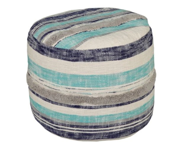 This blue and white striped pouf is made to bring versatility into a space without sacrificing style. The distressed look within this piece adds colors without overwhelming a space and keeps the design looking fresh for years to come. Use this piece as an extra seat, ottoman, footrest, or even a small side table.