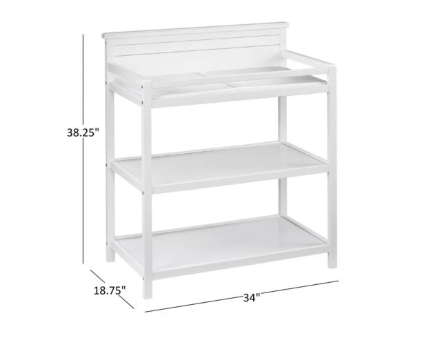 The Harper changing station is ready to help make diaper changes go as smoothly as possible. The changing top offers a low railing around the edge, a soft changing pad and a high back to help keep your child securely in place. A pair of open shelves provides plenty of storage space for diapers, lotions and other necessities. The white finish complements any nursery. With the Harper changing station at your side, changing time is sure to be a breeze.