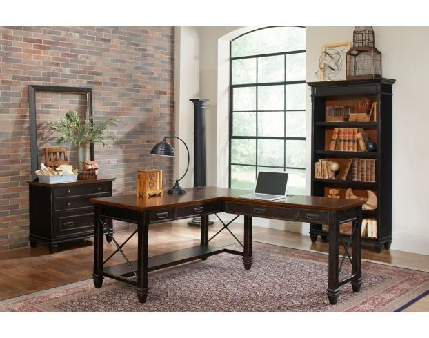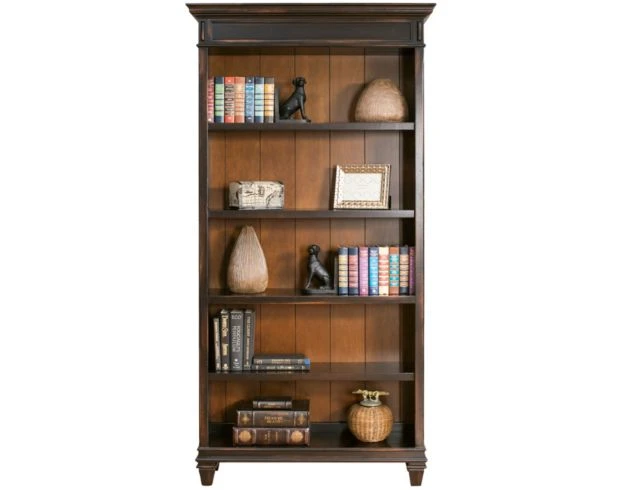 Add rustic charm and plenty of storage to your home with this handsome bookcase. The impressive design features three adjustable shelves and one fixed shelf, providing ample space for books and more. The weathered, black-rubbed finish showcases the classic lines and planked back, creating a great look for any country-inspired space.