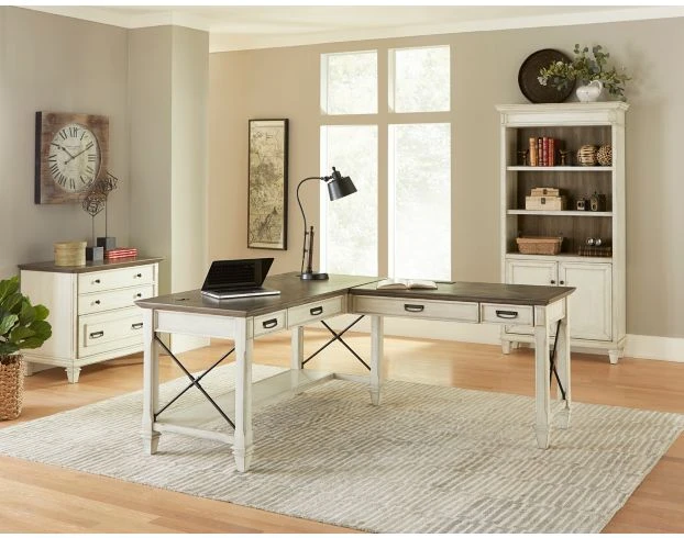 Increase your productivity with this bookcase. It features one fixed shelf, three adjustable shelves, and two doors. With its beautiful light two-toned finish, this bookcase will provide both style and plenty of space to work with.