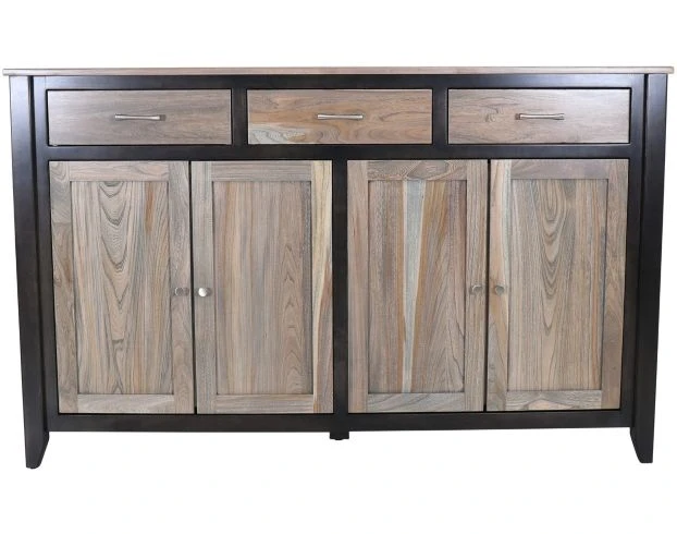 Add style and organization to your space with this charming Stafford buffet. This Amish made buffet is constructed of elm and maple wood. It features three drawers, two inlays that open up to roomy shelving space and three pull out trays. The two tone finish will add a chic look to any space.