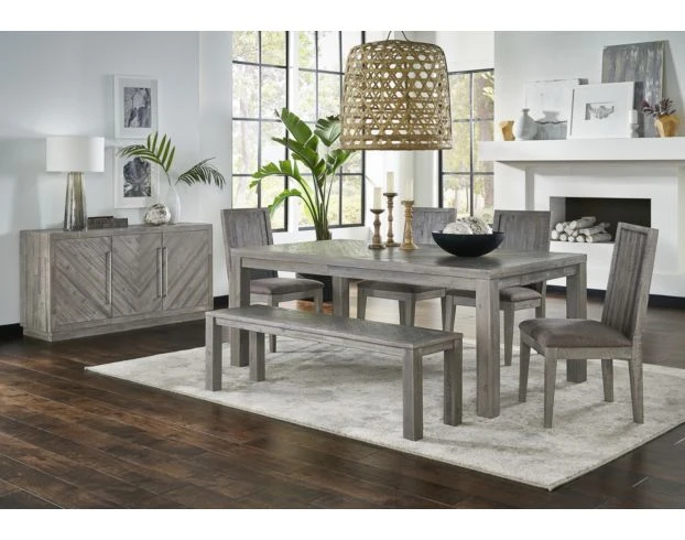 Rustic and contemporary style combine with acacia wood to create the Modus Furniture Alexandra Table. Planks of solid wood are hand-selected, sanded, and stained to feature the natural knots. Next, they are inlaid over plywood to create a handsome, geometric pattern. Gather your family around this impressive table for dinner time. LOC 2F