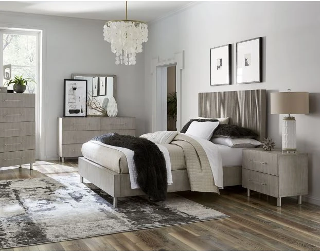 Bring your bedroom style into the present day with this sleek queen bed. Its headboard offers a distinctive texture that will accent your space, while the sturdy stainless steel legs offer outstanding support. The light oak veneers make this piece an eye-catching inclusion to any contemporary space.
