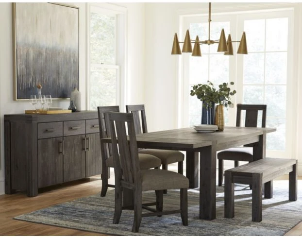 The Modus Furniture Meadow Gray Table would make the perfect addition to any dining space. Crafted from sustainable acacia solid wood, this piece offers clean lines, two drop-leaves, and legs that extend upward to reveal the beautiful end grain. The gray finish highlights the clean lines and rustic style to complement any interior palette.