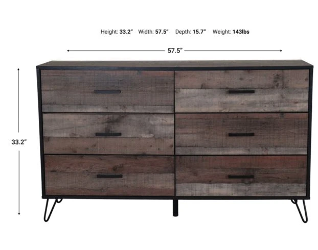 The New Classic Elk River Dresser is a stunning addition to any home, designed to elevate your bedroom’s style and functionality. This dresser offers exceptional durability and longevity, ensuring that your investment lasts for years to come. One of the standout features of this dresser is the Kenlin center drawer glides, which provide smooth and easy opening and closing of drawers. The English dovetailed drawers add an extra layer of strength and stability, ensuring that your items stay safe and secure. The Elk River dresser is designed with a rustic brown finish that adds a touch of warmth and character to any bedroom. The cast iron legs offer a beautiful contrast to the finish, adding an industrial flair to the piece.
