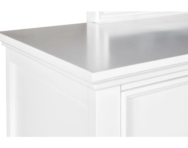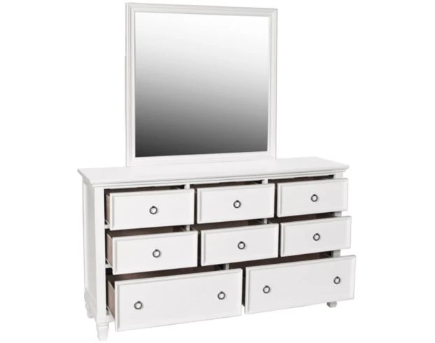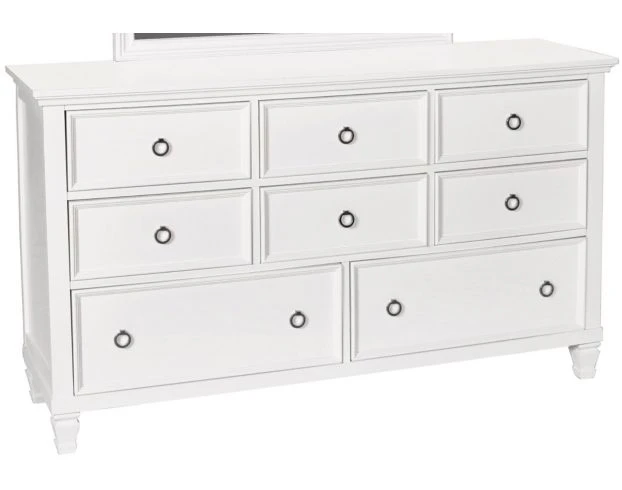 Add timeless style and storage space to your bedroom with this beautiful dresser. It features eight all-wood drawers with side-mounted glides, ensuring lasting strength and ease of use. The clean, white finish highlights the beautiful wood details and stylish hardware. Additional features include: hardwood solids and veneers, storage area, chrome finish hardware, white finish