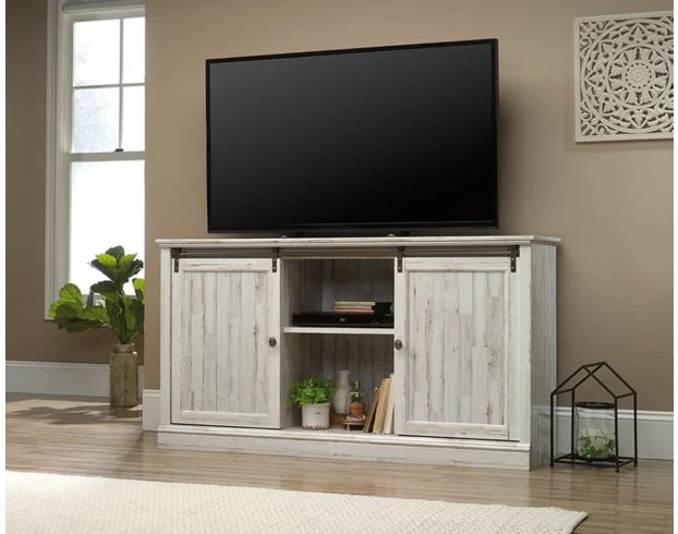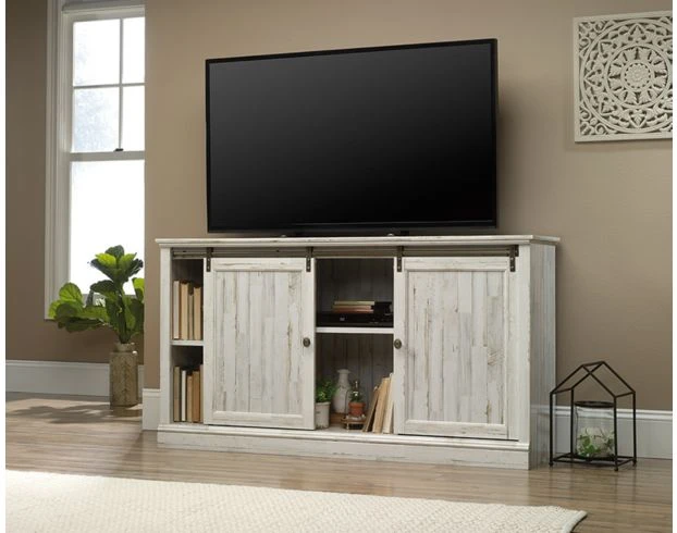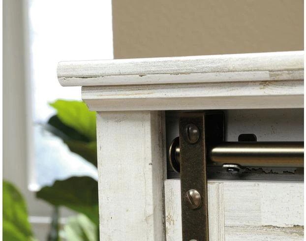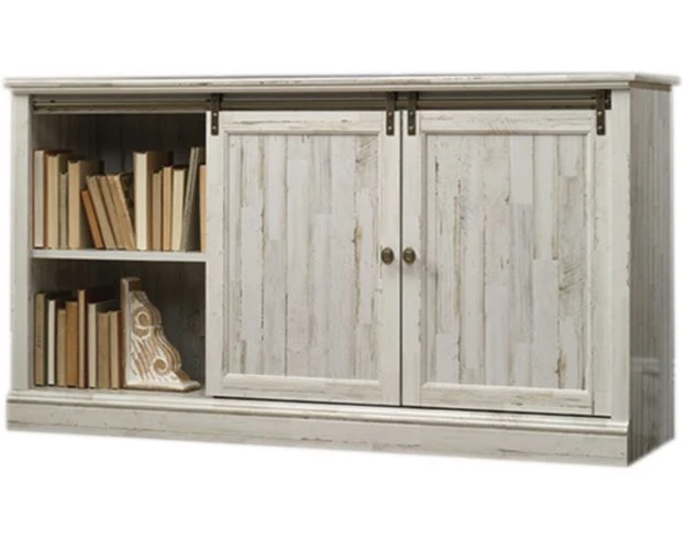 Add rustic charm to your home with this credenza. It features sliding doors, adjustable shelving and a painted light wood finish. The distressed wood look and ample storage make this the perfect addition to any rustic space.