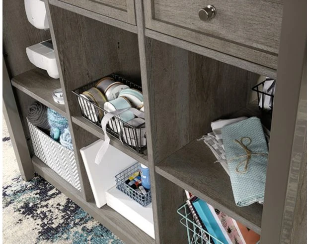 Take your crafting to the next level with this oak work table. The melamine surface is heat, stain, and scratch-resistant, meaning you can stay worry-free with even the most daring hobby projects. Below the spacious top surface are three storage drawers that can be pulled out from either side of the table for optimal use. Even better, the drawers are removable and can function as a tray on the top surface for various craft items. Finished on all sides for versatile placement, this piece will be stylish and functional no matter where you arrange it.