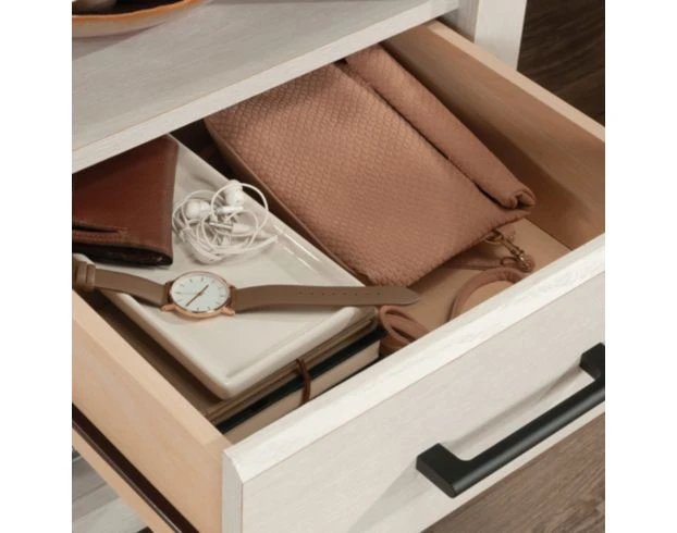 The Sauder Summit Station Nightstand has a transitional design that blends elements of both traditional and contemporary styles, making it versatile and suitable for various bedroom decor themes. It also features convenient storage options. These drawers are perfect for containing clutter and chaos, allowing you to stow away a variety of items.
