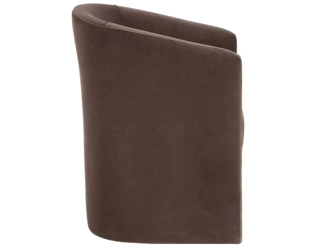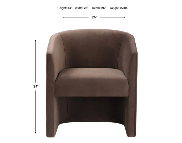 Distinctly modern, the Iris Cocoa Accent Chair is a wonderful luxe addition to any room. Bathed in earth-toned velvet fabric hues and offering plush seating, this is the perfect chair for snuggling in for reading, relaxing or adding a cozy touch to a dining table. The soft shape and modern design makes this seating option a great addition for any modern aesthetic. Warm, inviting and plush make this the most comfortable seat in the house wherever you place it.