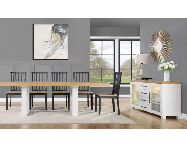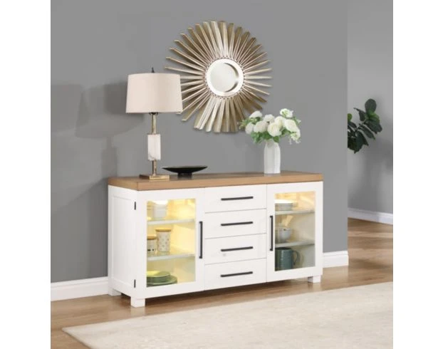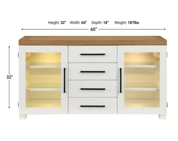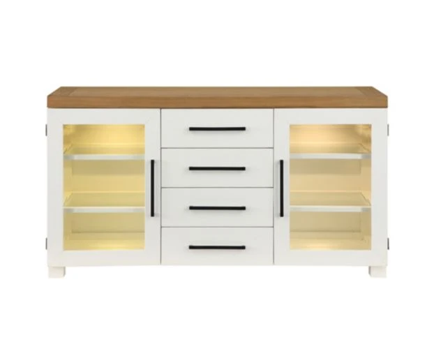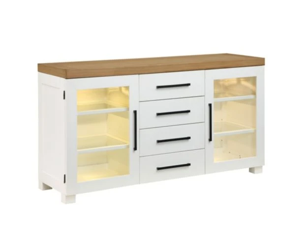 The Magnolia server is a stylish and functional addition to any farmhouse-inspired dining room. The server’s two-tone natural and white finish perfectly complements the acacia and Asian hardwood construction, creating a warm and inviting atmosphere. The server features four drawers and two cabinets with two shelves in each cabinet, providing ample storage space for all your dining essentials. Whether you’re hosting a family dinner or entertaining guests, the Magnolia server is sure to impress with its timeless design and practical functionality.