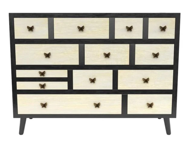 Integrate a little whimsy and a lot of function to any room with this accent cabinet with thirteen drawers. A mid-century modern design, the asymmetrical drawers lend visual interest to the piece while offering a generous storage platform for different sized items. LOC 2F,7H