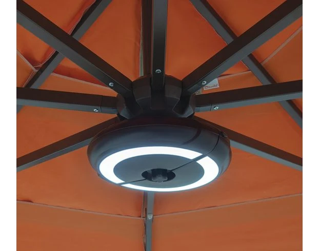 Illuminate your outdoor space with the Treasure Garden Vega Light Black Umbrella Halo Light. It is a cordless, rechargeable light that is self-adjusting so you can easily fit it onto any outdoor patio umbrella. Powered by LED bulbs, this light lasts for hours so you can enjoy the outdoors for longer!