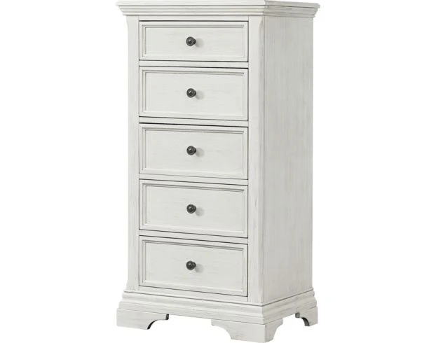 Grand style and high-quality construction combine with this pier chest. This pier chest features five drawers with full-extension, ball-bearing glides and knob hardware. The crisp, white finish is the perfect gender-neutral hue for any nursery or kids’ bedroom.