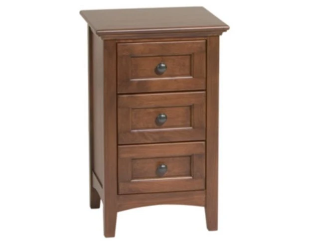 Transitional style and function combine with this versatile nightstand. It features a thinner footprint for smaller spaces and three spacious drawers, perfect for storing books and other necessities. The antique cherry finish highlights the beautiful wood details and adds warmth to any color palette. Additional features include: alder solids and veneers, English dovetail drawers, mortise and tenon construction, full extension ball bearing glides